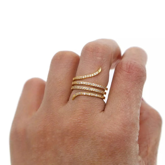 Anillo de plata DORADO de SERPIENTE con zirconias