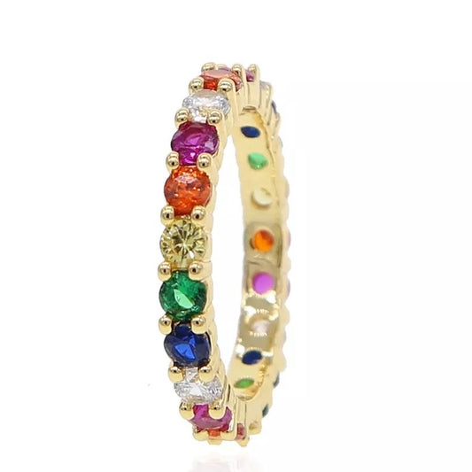Anillo con BAÑO DE ORO con ZIRCONIAS de colores