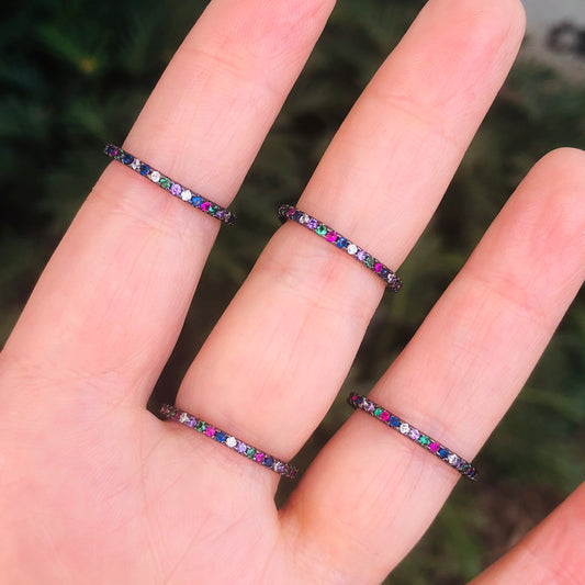 Anillo NEGRO de rodio con ZIRCONIAS de colores