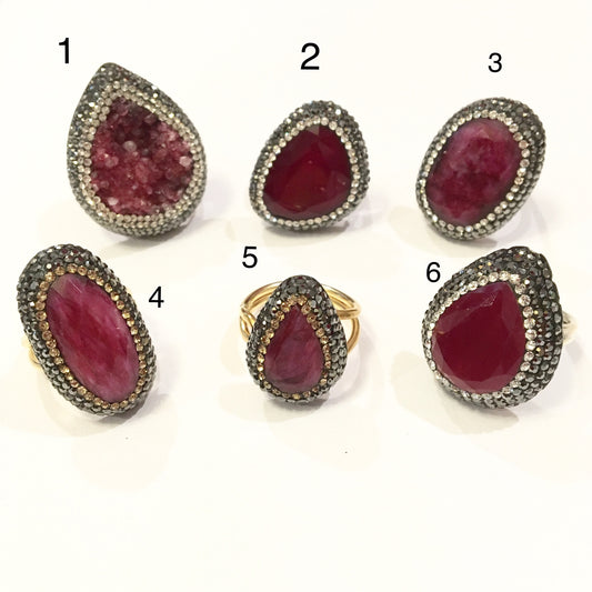 Anillos de plata con piedra natural DRUZY AZUL y cristales