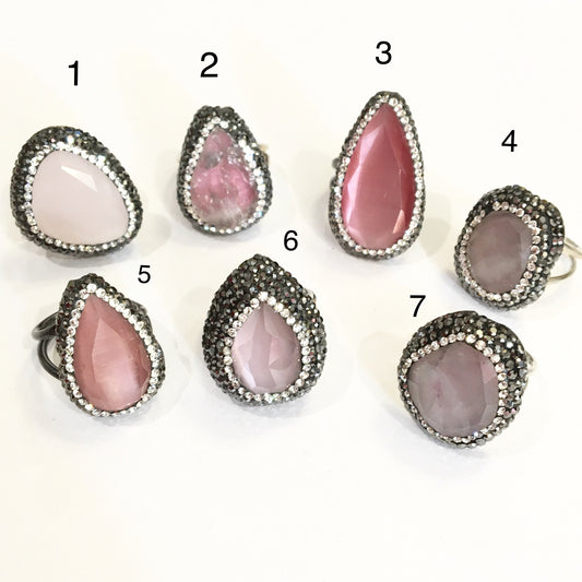 Anillos de plata con piedra natural y cristales ROSAS CON PLATEADO