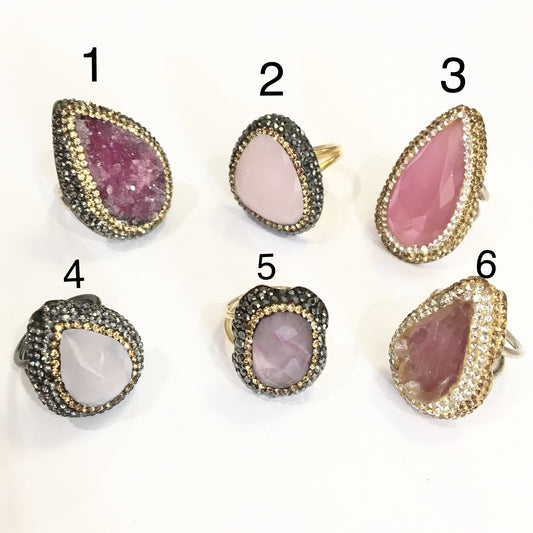 Anillos de plata con piedra natural y cristales ROSAS CON DORADO