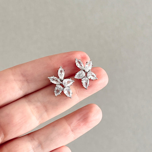Aretes HOJITAS y GOTA de rodio con ZIRCONIAS