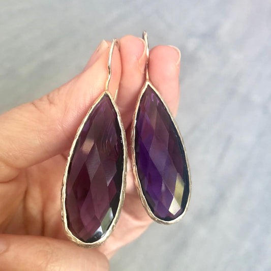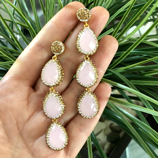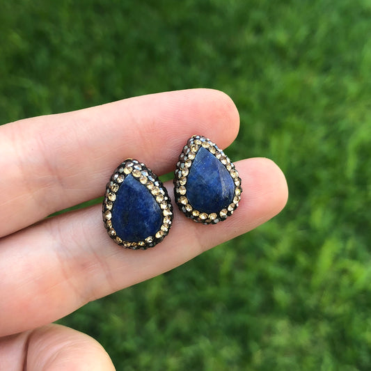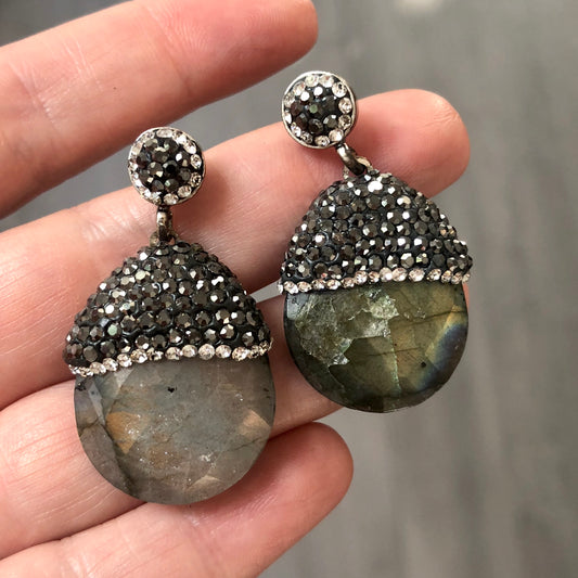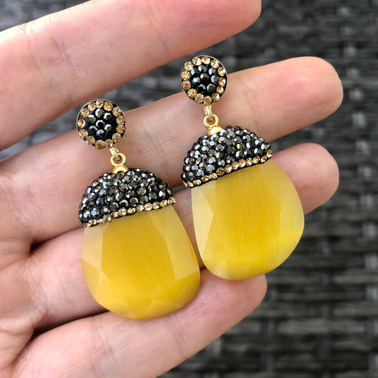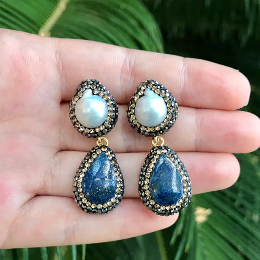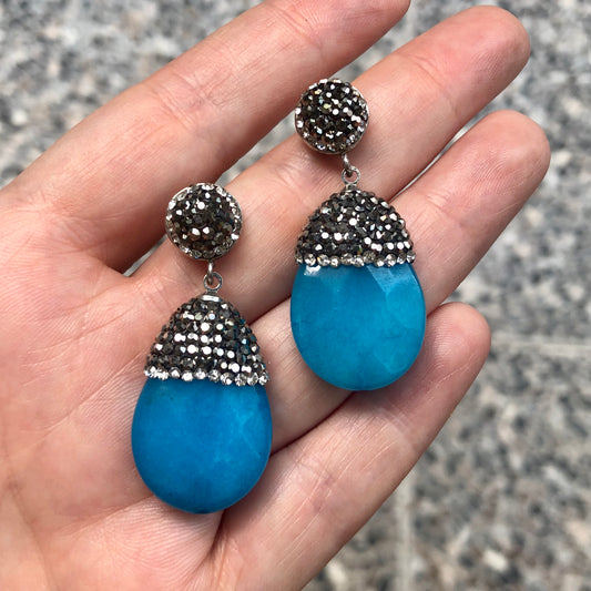 Arete de plata de GOTA de PIEDRA NATURAL y CRISTALES