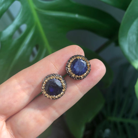 Arete de plata REDONDO con PIEDRA NATURAL y Cristales