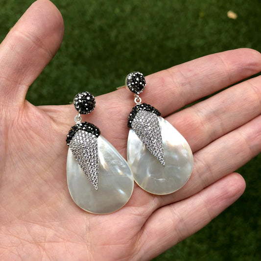 Arete de plata de MADRE PERLA de GOTA Con Cristales