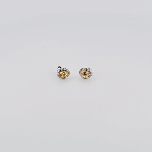 Aretes de ORO con Citrina Ovalada y Diamantes $380 dlls
