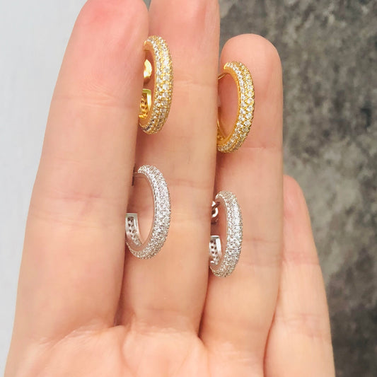 Arracadas MEDIANAS de PLATA cubierta con ZIRCONIAS