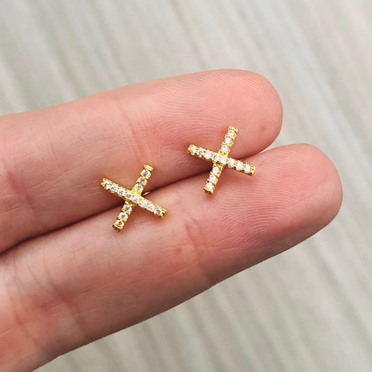 Aretes de X dorados cubiertos con ZIRCONIAS