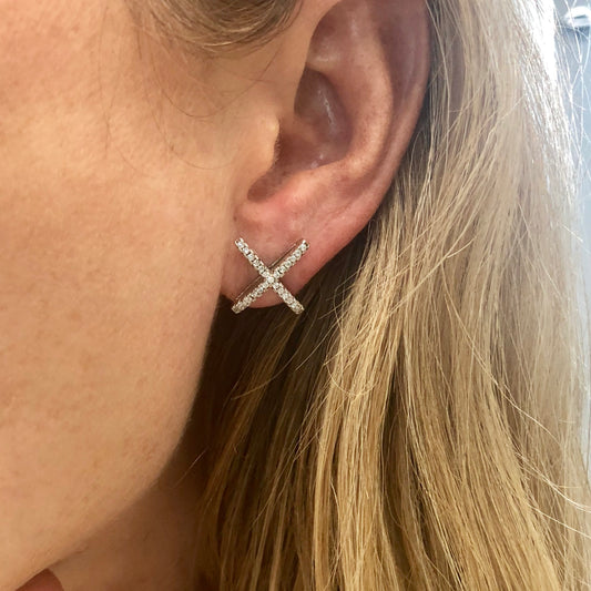 Arete de plata .925 con X en 3D