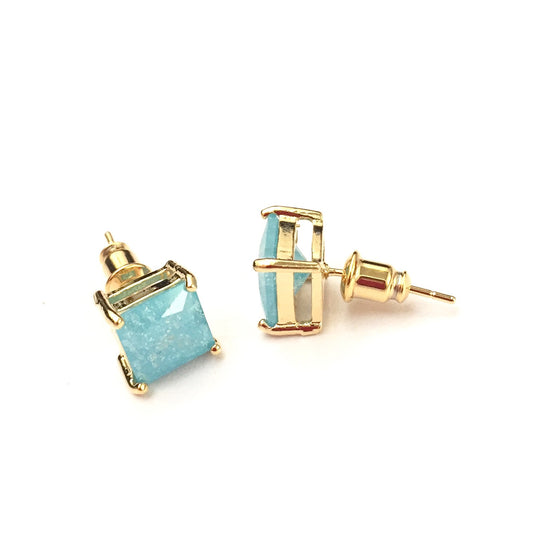 Arete broquel CUADRADO de CRISTAL TRANSPARENTE