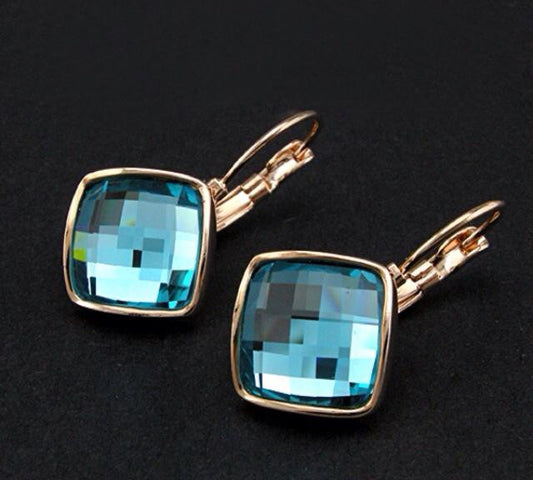 Arracada con cristal de cuadro y mini swarovskis dobles alrededor
