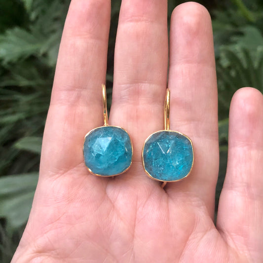 Arete de PLATA con Piedra CUADRADA REDONDEADA