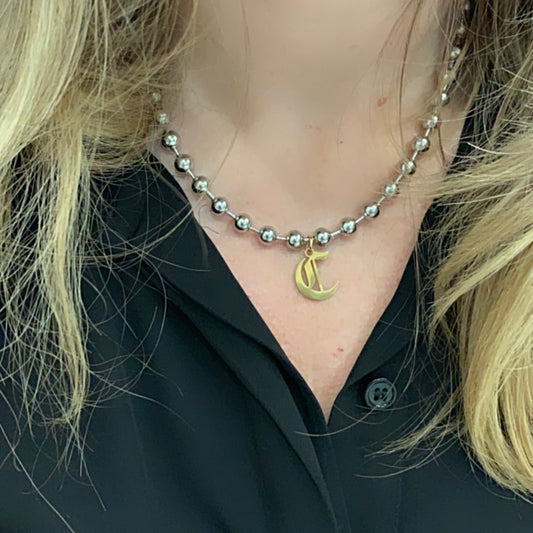 Cadena de ACERO de bolitas con INICIAL DORADA
