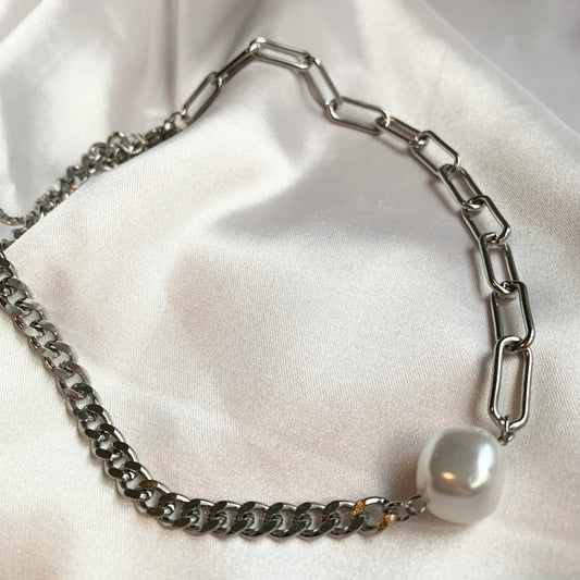 Cadenita CHOKER de PLATA combinada con PERLITAS