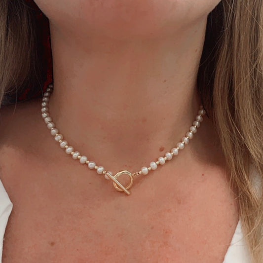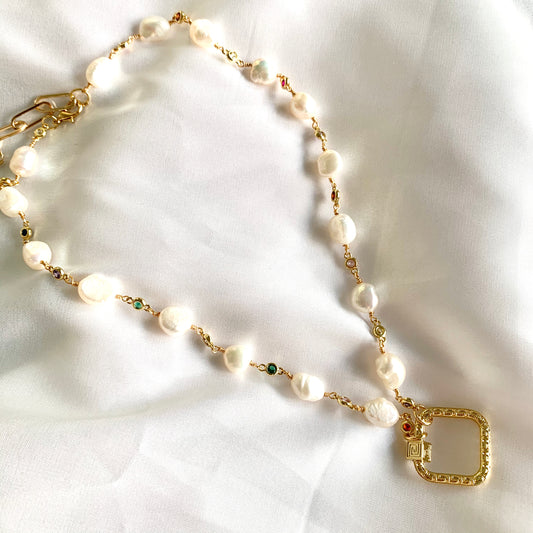 Collar dorado de PERLAS BLANCAS y ZIRCONIAS