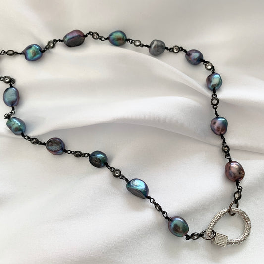 Collar negro de PERLAS GRISES y ZIRCONIAS