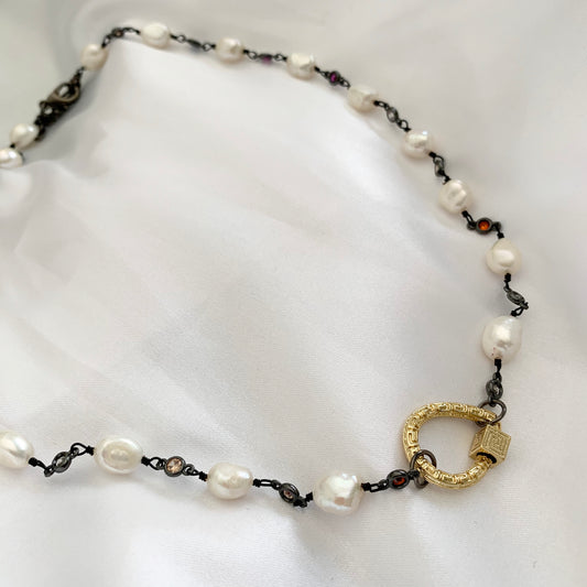 Collar negro de PERLAS BLANCAS y ZIRCONIAS