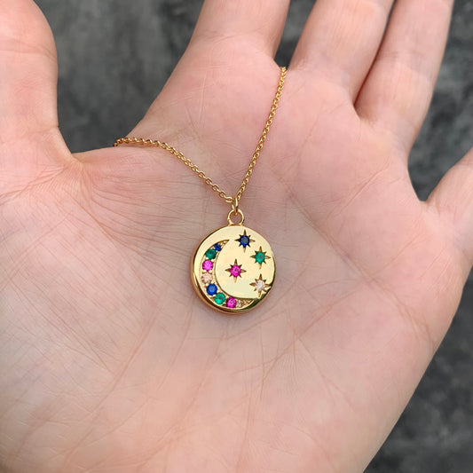 Cadenita CHOKER con PLACA con LUNA y ESTRELLAS