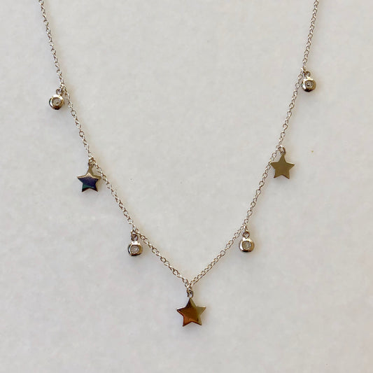 Cadenita CHOKER de plata con ESTRELLAS y ZIRCONIAS colgantes