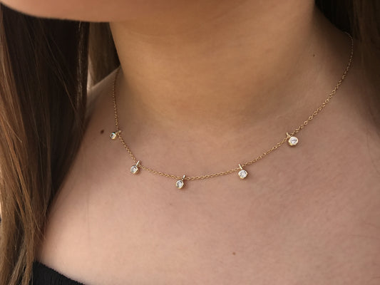 Cadenita CHOKER de plata con ZIRCONIAS COLGANTES