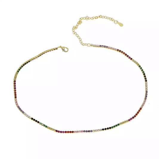 Cadenita CHOKER de plata con zirconias de COLORES
