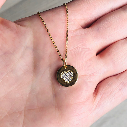 Cadenita de PLATA con CIRCULO con CORAZON cubierto con ZIRCONIAS