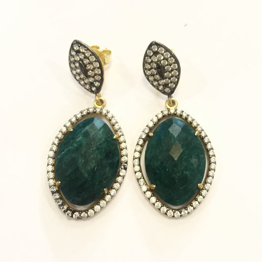 Arracada con cristal de cuadro y mini swarovskis dobles alrededor