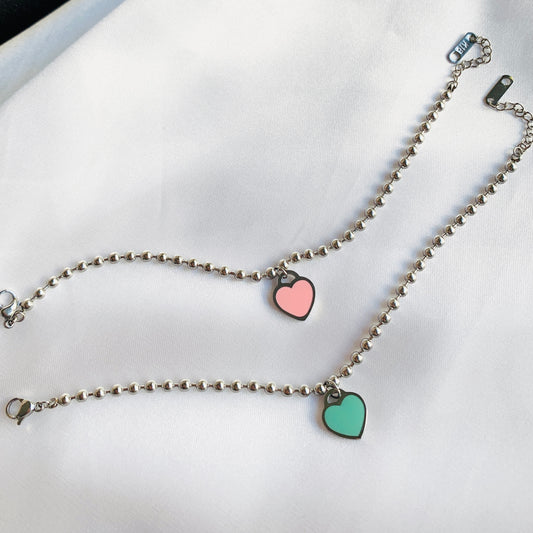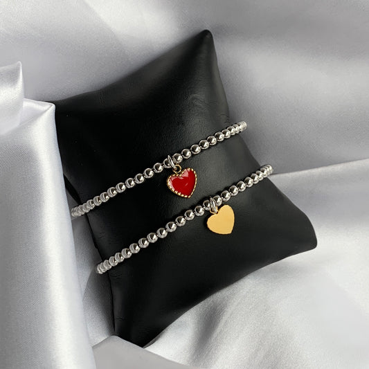 Pulseras de bolitas de ACERO INOXIDABLE y dije CORAZON