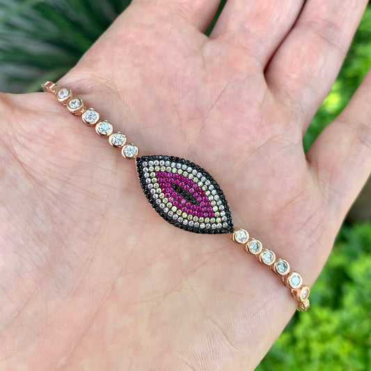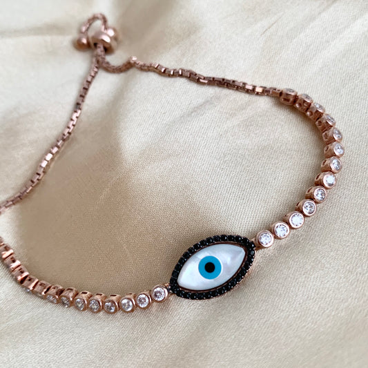 Pulseras ajustables de plata con OJITO y CRISTALES