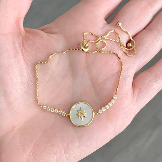 Pulsera AJUSTABLE de plata con circulo de CONCHA y ESTRELLITA