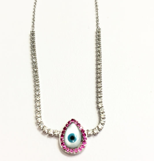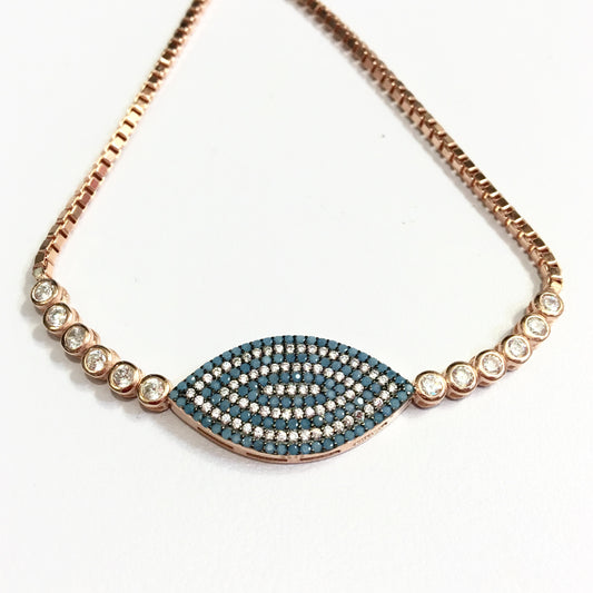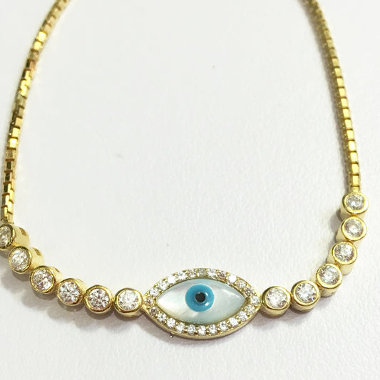 Pulsera ajustable de plata con OJITO y CRISTALES