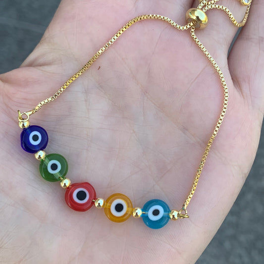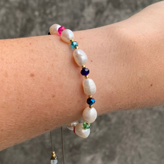 Pulsera ajustable con PERLAS y PIEDRITAS de colores