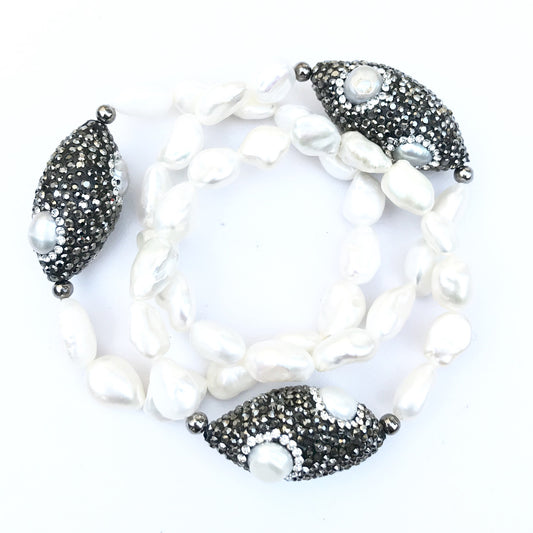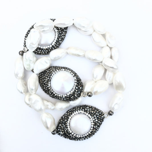 Pulsera de PERLAS con dije de PERLA con PIEDRITAS y CRISTALES