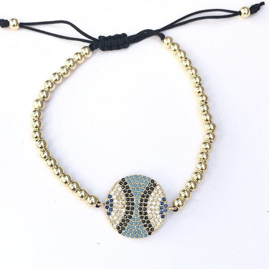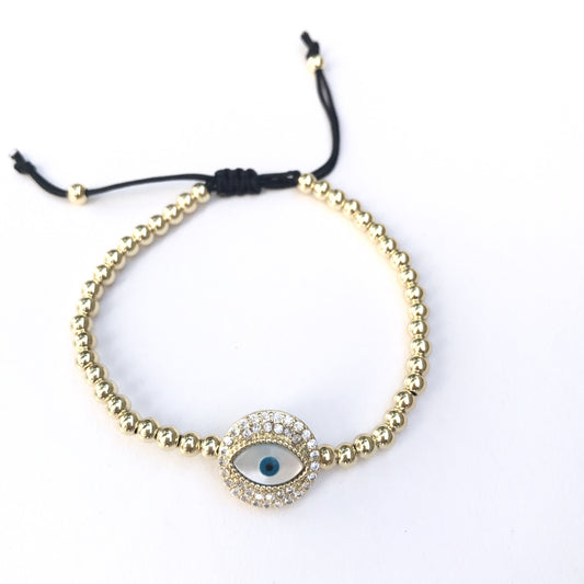 Pulsera Ajustable de CIRCULO con OJO en NEGRO con zirconias