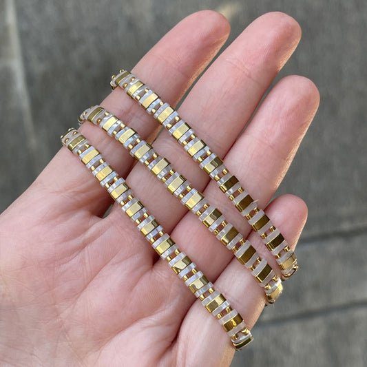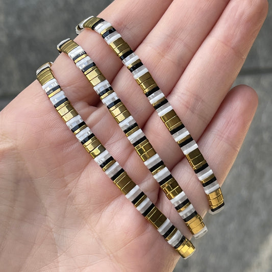Pulseras ELASTICAS con blanco, negro y dorado