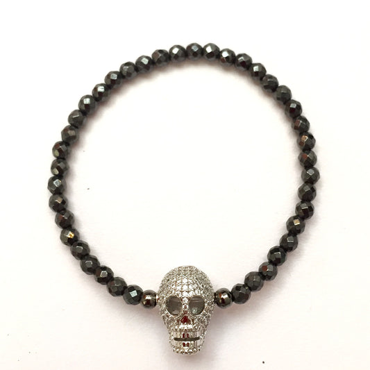 Pulsera de piedra HEMATITA con dije de CALAVERA